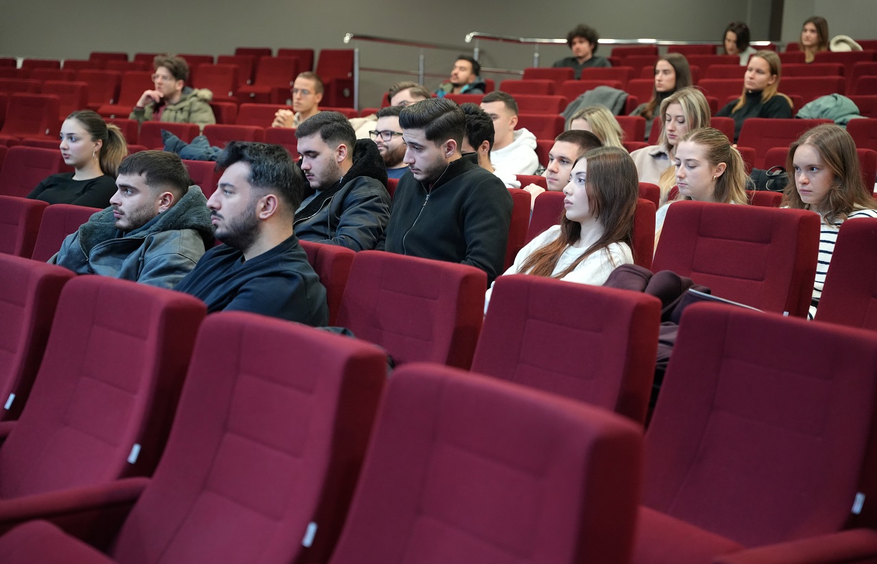 Gospodin Jusufović studentima je detaljno predstavio proces pretvaranja poslovne ideje u tržišno konkurentan proizvod, objašnjavajući kako mu je istraživanje tržišta u ranoj fazi pomoglo da bolje razumije potrebe potrošača i oblikuje vrijednost koju njegovi proizvodi nude. Govorio je o tome na koji način formiranje cijena utiče na percepciju brenda, kao i kako online prodaja i logistički izazovi isporuke proizvoda preko državnih granica određuju gdje i na koji način kupci mogu pristupiti ponudi. Govoreći o saradnji s dobavljačima i izboru najefikasnijih kanala za dosezanje ciljane publike, pokazao je kako se ove odluke međusobno nadovezuju i zajedno čine jedinstvenu marketinšku strategiju koja podržava rast i razvoj brenda.